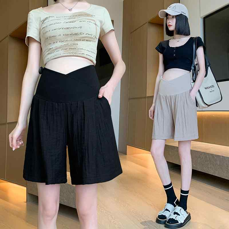 M~2XL マタニティデニムパンツ アジャスター付き 短パン 美脚 夏服 ボトムス