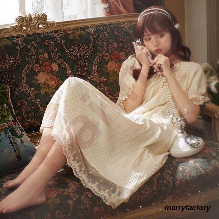 ネグリジェ 春夏 姫 ネグリジェ 半袖ワンピース 可愛いレースフレア ロング丈 ネグリジェ パジャマ レディース 大人 部屋着 オシャレゆったり大きいサイズ