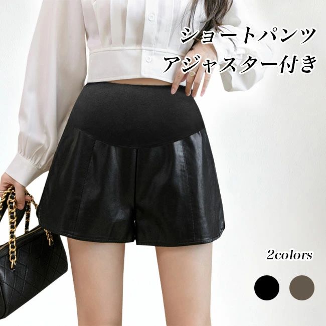アジャスター付き PUレザーマタニティショートパンツ