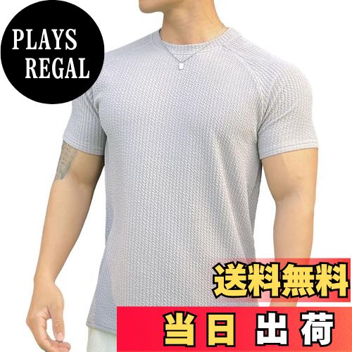 【送料無料】[KULIXI] トレーニングウェア メンズ ジム tシャツ スポーツ ストレッチ 半袖 丸首 筋トレ フィットネス カジュアル アクティブ 無地 Tシャツ 5408+5511 色:5408(ライトグレー)、サイズ:2XL