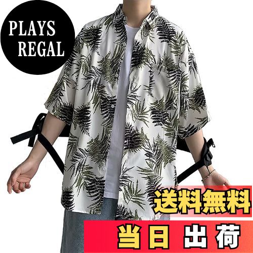 【送料無料】[SUPFANS] アロハシャツ メンズ 花柄しゃつ 半袖 ゆったり涼感 接触冷感 サラサラ快適 夏服 薄手 カジュアル シャツ 色:16ホワイト、サイズ:3XL