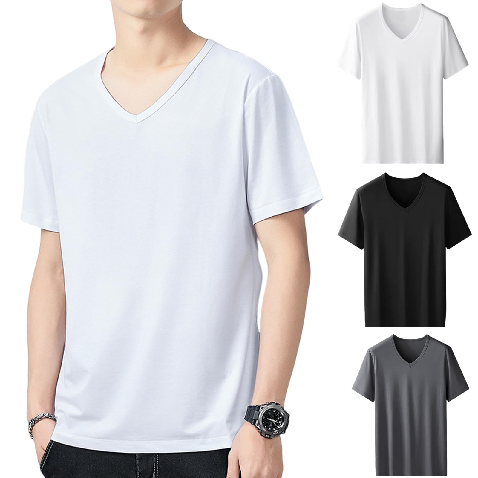 【送料無料】[HISITOSA] インナーシャツ メンズ 半袖【驚異の吸汗速乾力】 肌着 Vネック3/5枚組【驚異の柔らかさ】 シャツ 下着 【驚異的な伸縮性能】 色:3枚組(ブラック+ホワイト+ダークグレー)、サイズ:L