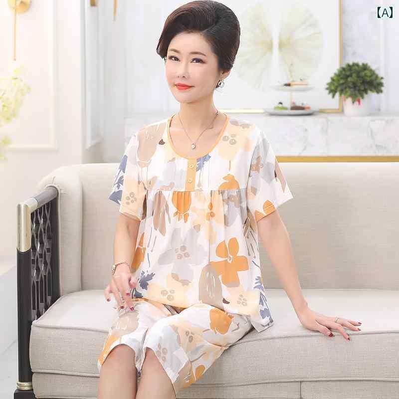 半袖 半ズボン パジャマ 中年 ママ パジャマ レディース 夏 モダール 半袖 クロップドパンツ ホーム 服 高齢者 大きいサイズ 薄手 スーツ