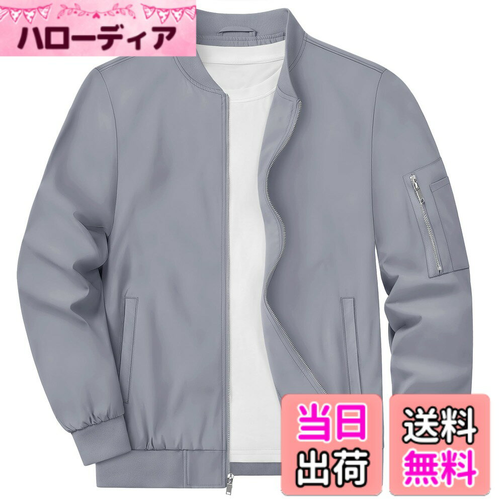 【送料無料】[KEFITEVD] アウター メンズ 秋冬 ブルゾン 防風 ジャンパー 紳士 ブルゾン 大きいサイズ 作業着 バイクジャケット 軽量 スカジャン ビジネス ライトグレー S