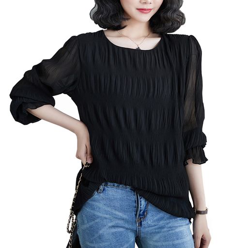 [CoeFodMavo]ブラウスレディース長袖シフォンシャツプリーツトップスフレア袖裏地付き無地薄手透け感オフィスゆったり大きいサイズシンプルカジュアルおしゃれ体型カバーお洒落着痩せ通…