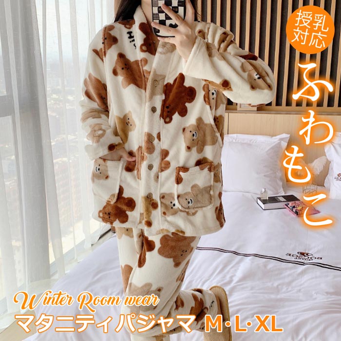 送料無料!入院も妊娠も産後も着れるパジャマもこもこ!マタニティ 授乳パジャマ 前開き 冬 厚手 暖かい 入院 産後可愛い あたたっか 入院 上下セット かわいい 綿 長袖 授乳服