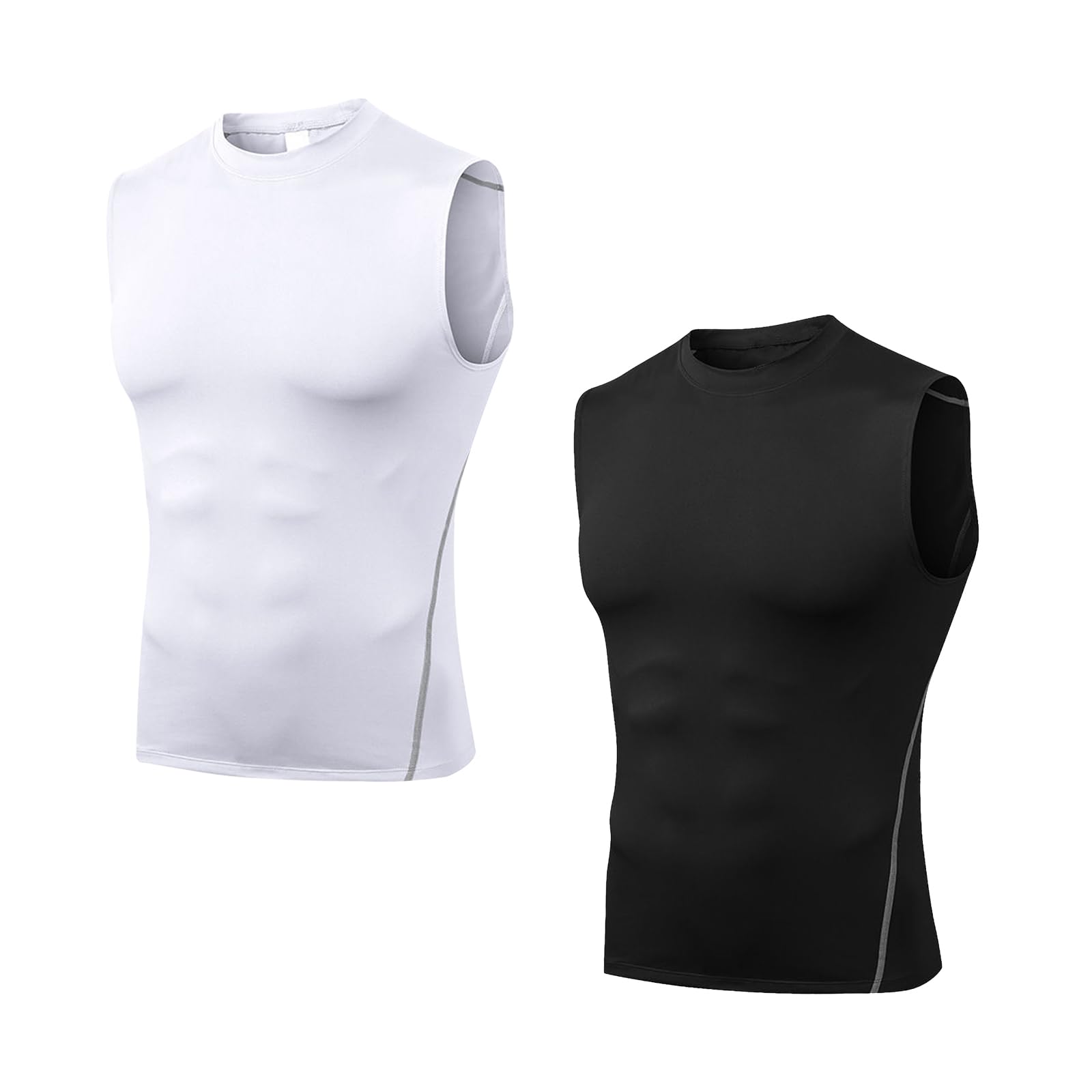 【送料無料】[KANGNAN] コンプレッションウェア メンズ 半袖 タンクトップ 2点セット コンプレッションシャツ UVカット 通気防臭 フィットネス スポーツ ベースレイヤー 吸汗速乾 加圧インナー 色:C1-ブラック+ホワイト-ベスト2点セット、サイズ:L