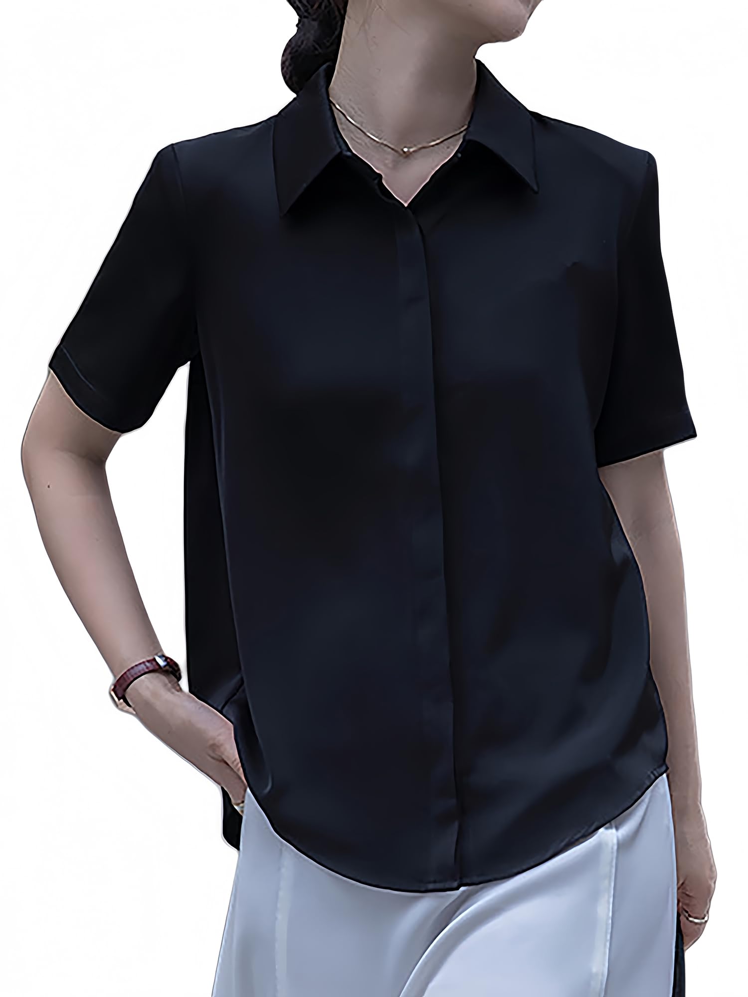 [JLBOCMGT]レーストップスブラウスレディース長袖Vネックシフォンシャツ透かし前開き着痩せ甘さファッションフォーマルオフィス通勤春秋
