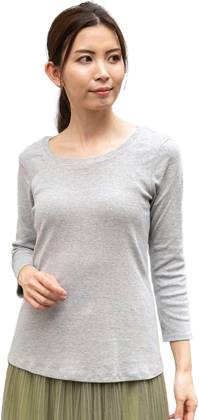 【送料無料】[aspersio] [アスペルシオ] コットン フライス 長袖 Tシャツ レディース 色:#1 Uネック8分袖杢グレー、サイズ:3L