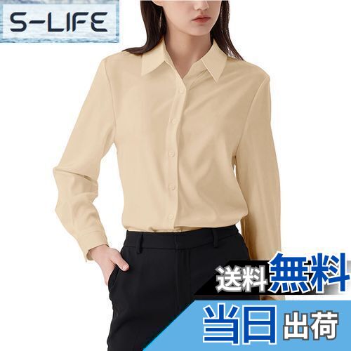 【送料無料】[YASHIGE] ブラウス ワイシャツ カッターシャツ レディース ドレスシャツ 長袖 無地 通勤 就活 オフィス 事務服 ビジネス ユニフォーム ノーアイロン 形態安定 ストレッチ 新生活 色:ベージュ、サイズ:L