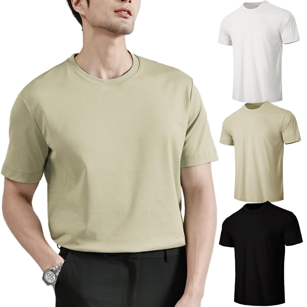 【送料無料】[HOTIAN] Tシャツ メンズ 半袖 ティーシャツ 涼しい 無地 夏服 クルーネック インナーシャツ トップス 1枚組/3枚組 通気 吸汗 カジュアル セット 春 夏 秋 冬 色:3枚-白+グリーン+黒、サイズ:2XL
