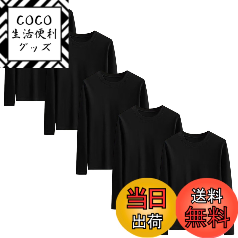 【送料無料】Hisitosa インナーシャツ メンズ 長袖 3枚セット 5枚組 防寒 肌着 裏起毛 厚手 長袖tシャツ 丸首 軽くて暖かい 冬服メンズ ストレッチ クセになる肌触り 色:5枚組-ブラック、サイズ:L