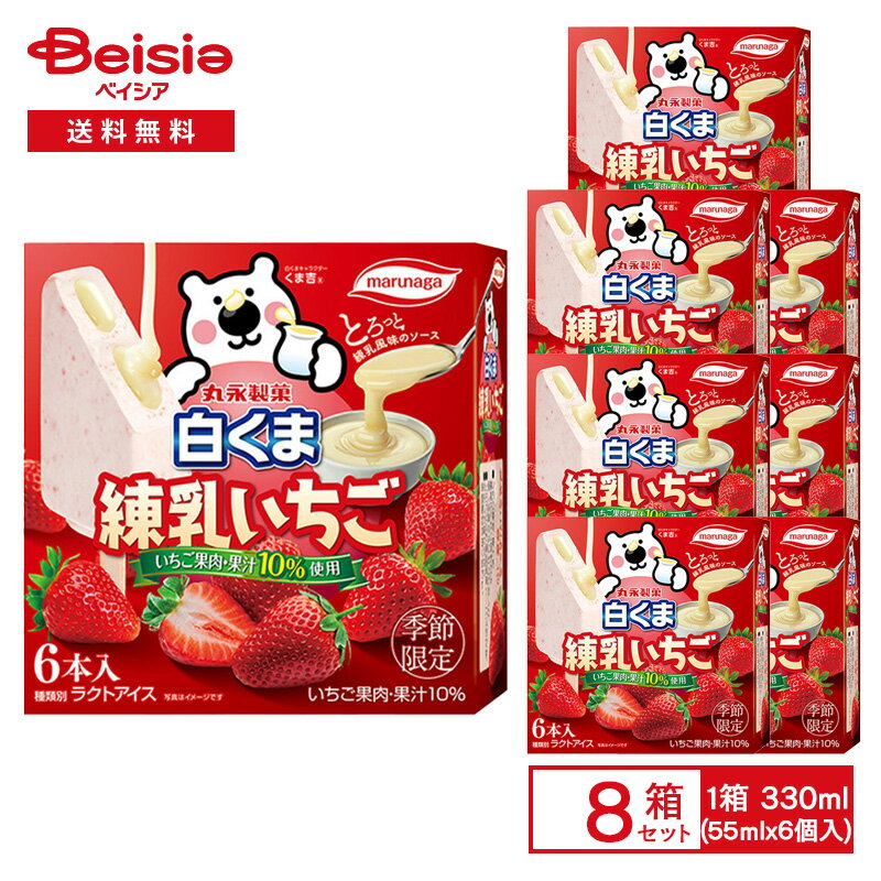 丸永製菓 九州名物 白くま 練乳いちご 330ml(55ml×6個入)×8箱 | アイス ラクトアイス 季節限定 白熊 いちご味 苺 果汁 果肉入り アイスバー マルチ デザート まとめ買い