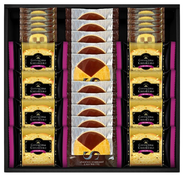 加賀野菜「五郎島金時」のほっこりしっとりのカットケーキと上品な味わいに仕上げたチョコゴーフレットとサクサクした食感の一口サイズのチェスクッキーの詰合せです。