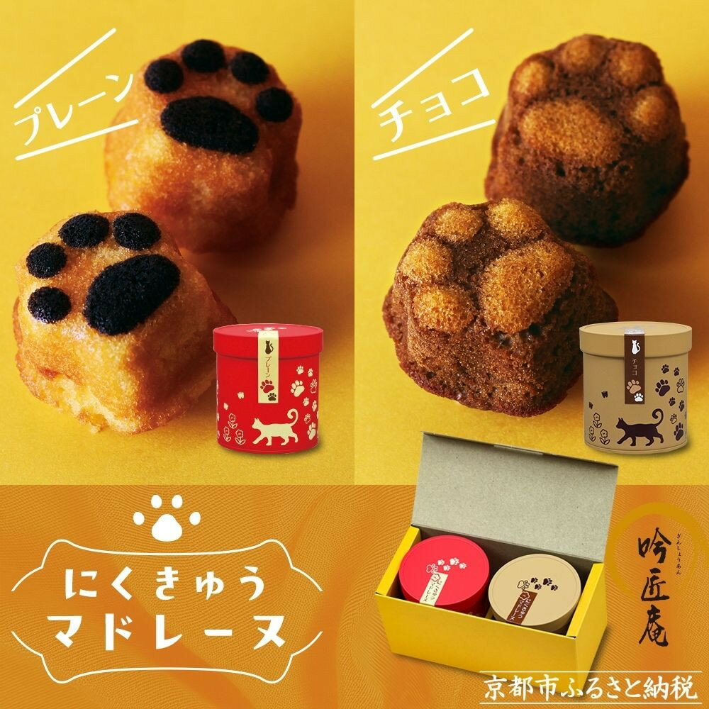 かわいい 猫サンタの小箱に肉球マドレーヌが 4個入っています。ちょっとした プレゼント や プチギフト に最適です!