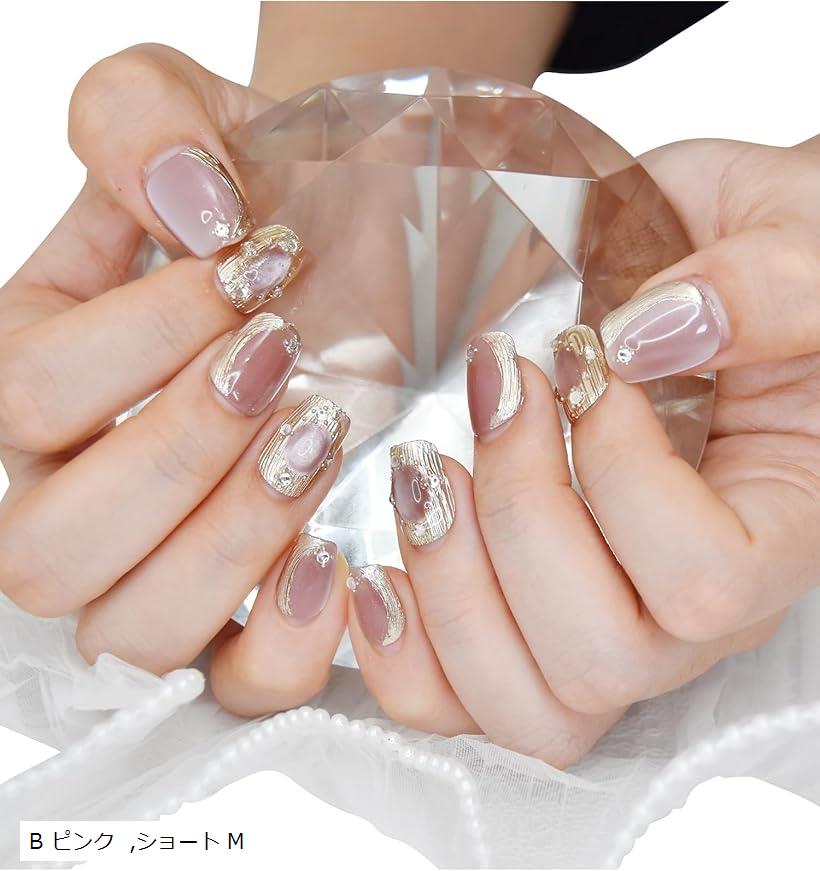 【送料無料】24pcs 偽の爪 短い 3D 装飾り 優雅 夢幻 写真を撮る、結婚式、成人式、パーティー、二次会など つけ爪