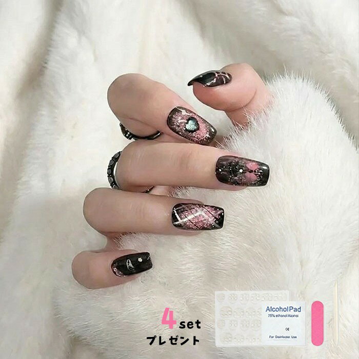 甘さとダーク感を絶妙にミックス。チェック×ハートが映えるロングネイルで、指先から世界観を完成させる。