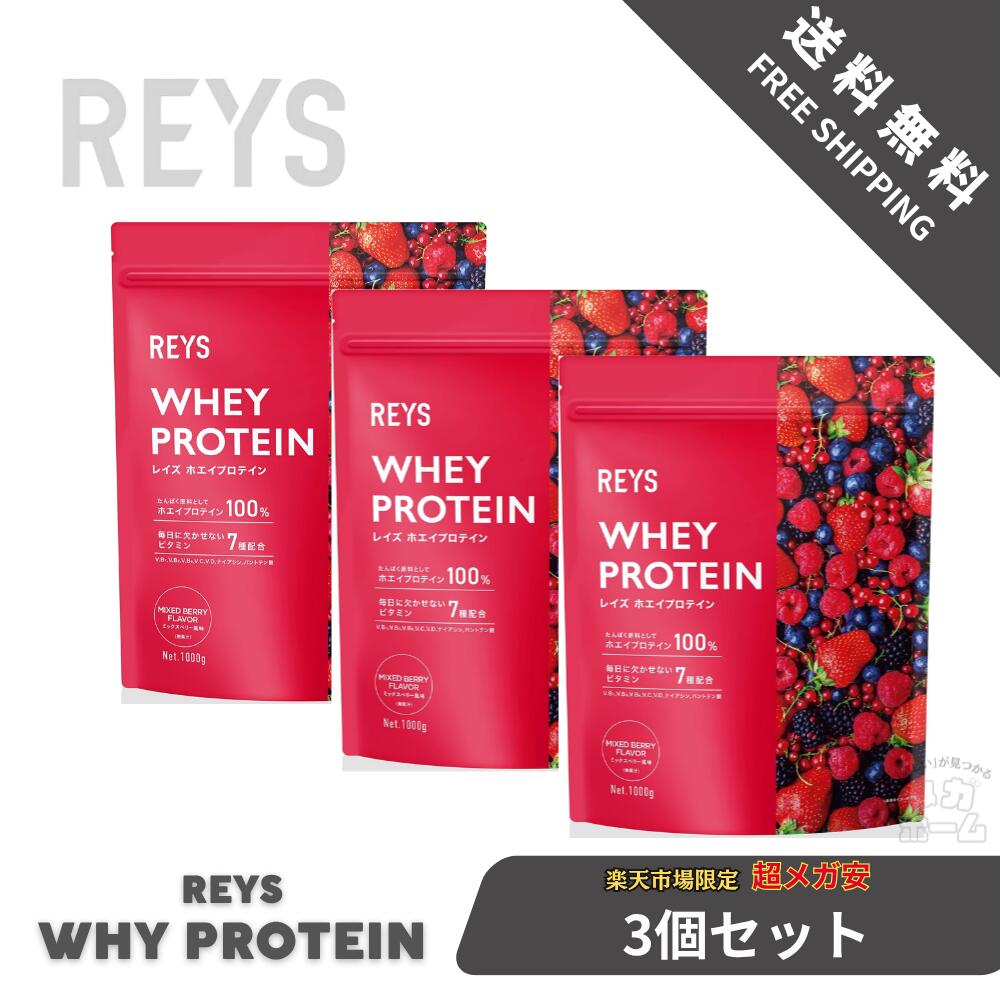 【3個セット】REYS レイズ ホエイ プロテイン 1kg 国内製造 ビタミン7種配合 WPCプロテイン ぷろていん ホエイプロテイン (ミックスベリー風味)