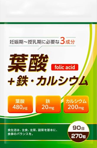 【送料無料】3ヶ月分 葉酸 480μg 鉄分 20mg カルシウム 200mg 11種類 ビタミンミネラル サプリメント 270粒90日分