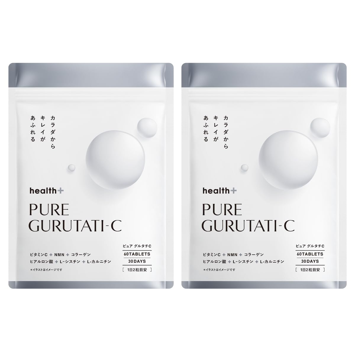 【送料無料】health+ ピュアグルタチ グルタチオン 含有 酵母エキス 飲む白玉美容サプリ ビタミンC L-シスチン NMN 美容成分贅沢配合 日本製 30日分 サイズ:2袋