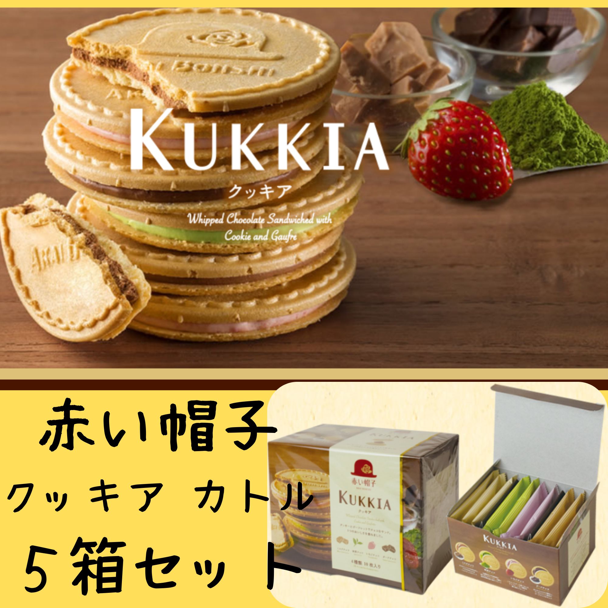 風味豊かなバニラゴーフレット、上品な味わいのチョコゴーフレット、サックリとしたアーモンドパイ、やさしい甘さのショコラスティックパイに、チョコとストロベリーの焼ドーナツをセット