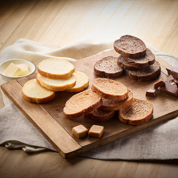 パティシエたちが手作業で丁寧に炊き上げた塩キャラメルに、ラスク専用のシュー皮をじっくりと漬け込み、アーモンドスライスをたっぷりのせて、香ばしく独特の食感に焼き上げました。