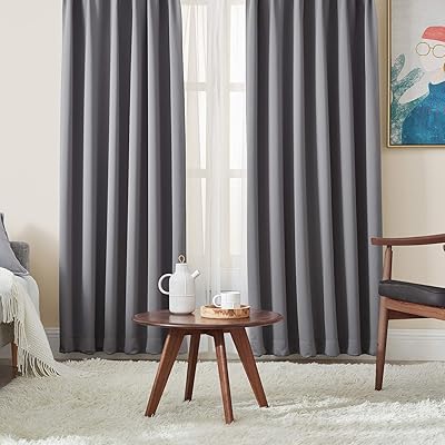 カーテン 遮光カーテン 1級遮光 厚手 断熱 防寒 防音 無地 洗濯可能 寝室 リビング 2枚組 (グレー, 幅100cm×丈178cm)