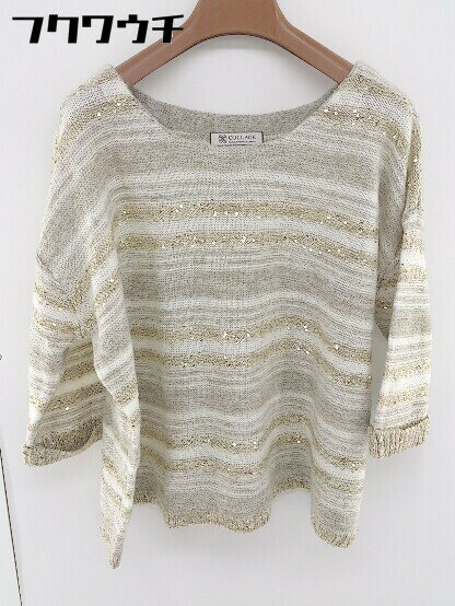 ◇ COLLAGE GALLARDAGALANTE ガリャルダガランテ スパンコール 七分袖 ニット セーター ベージュ ゴールド レディース 【中古】