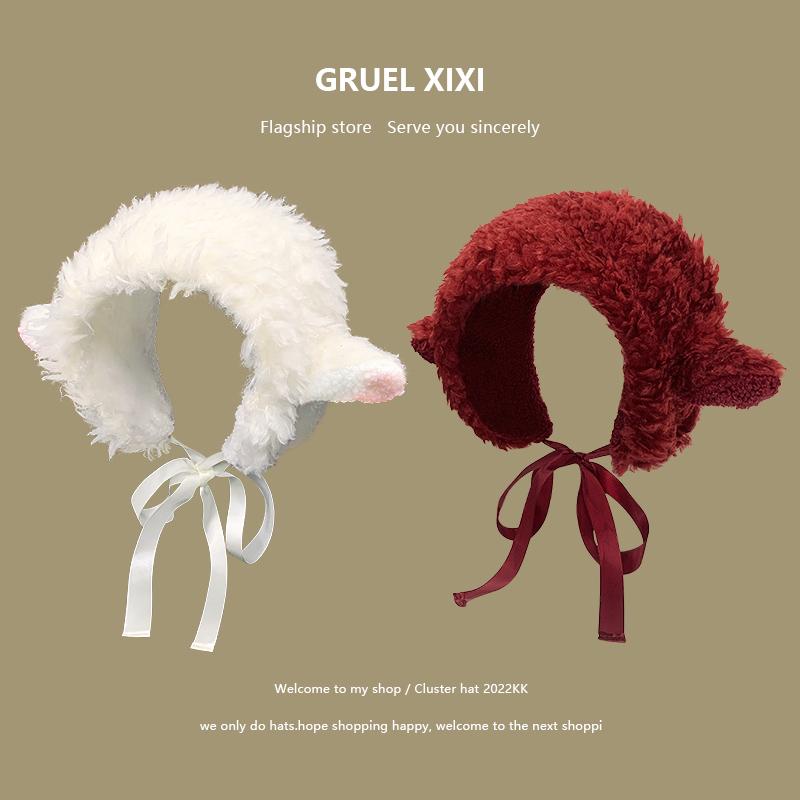 帽子 うさぎ かわいい 赤い 和風の 柔らかくて かわいい ラムスキン 帽子 女性用 秋冬用 暖かい ラム 耳 ストラップ 親子用 保護