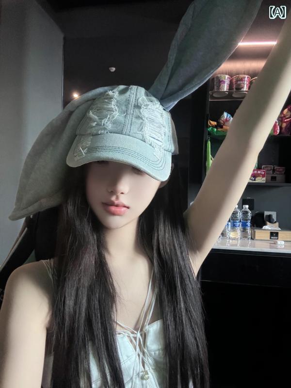 うさぎ耳 帽子 かわいい ウサギの 耳 カウボーイハット レディース 春秋 ダックビル 野球帽 かわいい ブルー 2024 スタイル ファッション小 顔