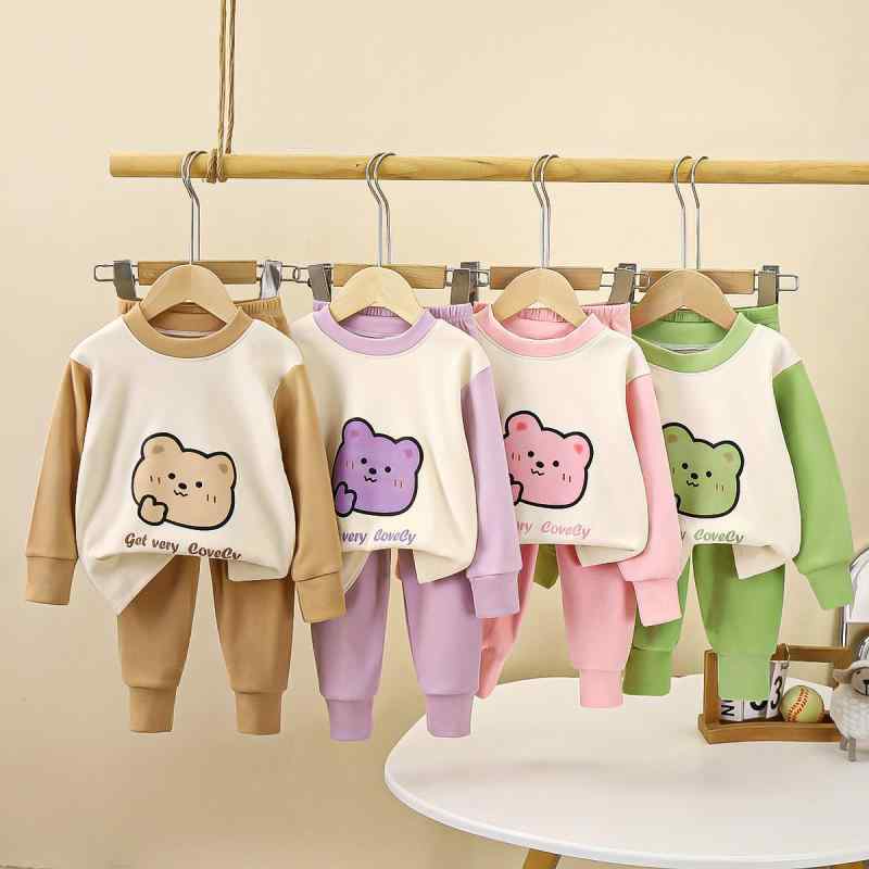 子供用セットアップ 秋冬 子供服 上下セット 部屋着 パジャマ 徳絨(とくりゅう) かわいい小熊柄 字母柄 80cm 90cm 100cm 110cm 120cm 130cm 140cm 150cm
