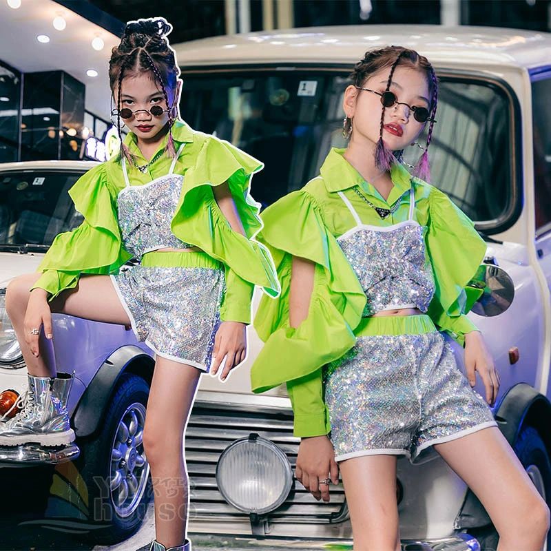 送料無料 キッズダンス衣装 へそ出し ジャズダンス チア チアガ