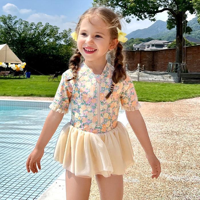 【スーパーSALE限定】キッズ水着 夏 女の子 ワンピース 春 半袖 ラッシュガード スカート水着 夏 140cm 130cm 120cm 110cm 100cm 90cm 可愛い 花柄 半袖水着 夏