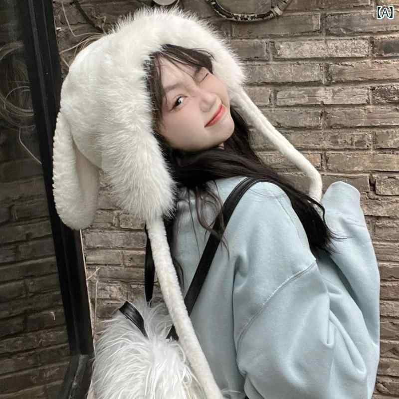 帽子 うさぎ耳 かわいい 韓国 甘くて かわいい 秋冬 長い 耳の ウサギの 包 頭 帽子 防寒 学生の 女の子 暖かい 耳 保護 帽子は 顔を 小さく 見せます