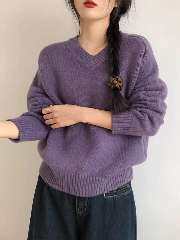 【新作】ニットセーター Vネック 暖かい レディース 秋冬 グレー
