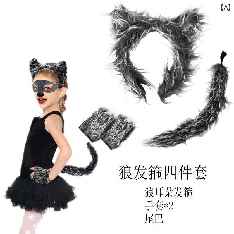 帽子 うさぎ耳 かわいい 大きい 悪い オオカミ ネズミ 馬 ロバ 鶏 鹿 かわいい ヘッド ドレス バンド 耳 尻尾の 3点 セット 子供用 パフォーマンス 小道具