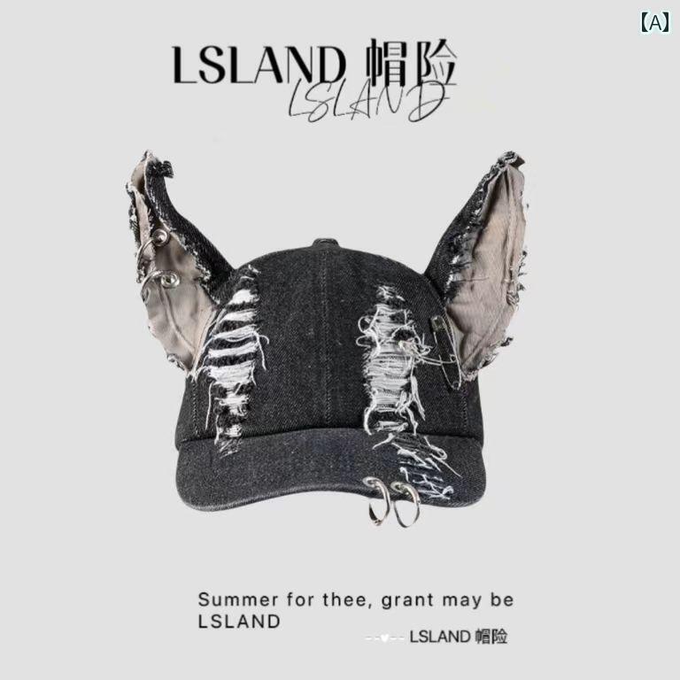 帽子 うさぎ かわいい Y2K 荒野 スタイル 個性 鉄 輪 デニム 穴 野球帽 女性 立体 耳 ストリート キャップ