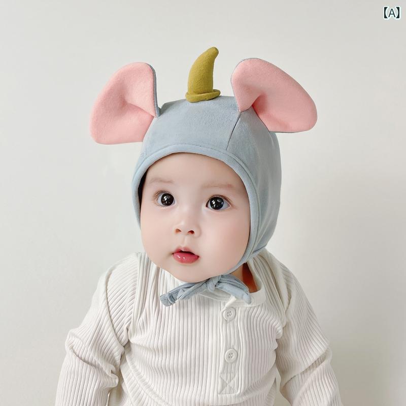 帽子 うさぎ耳 かわいい ベビー 帽子 春秋 薄手 包 頭 かわいい 象 新生児 泉 門 保護 胎児 綿 耳