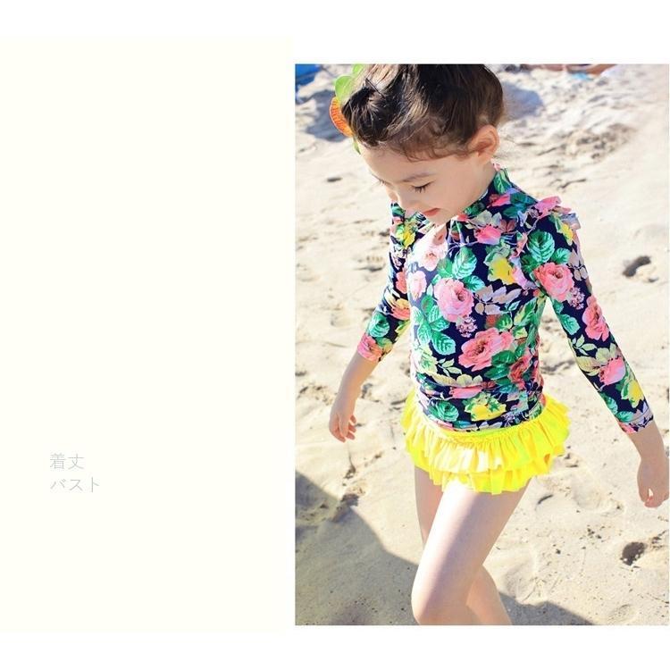 【スーパーSALE限定】水着 3点セット セパレート 長袖 キッズ 子供 女の子 帽子付き 肩フリル 花柄 フラワー かわいい おしゃれ 水泳 プール ビーチ 海