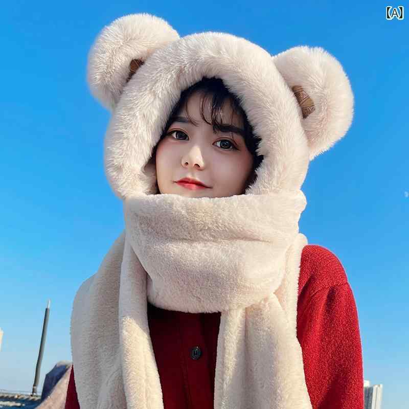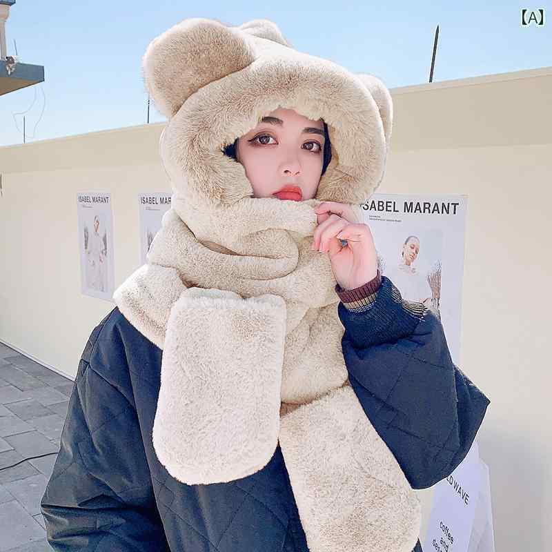 うさぎ耳 帽子 かわいい 女性用 クマ 帽子 冬 かわいい 暖かい ぬいぐるみ 手袋 フード付き ネック スカーフ 3点 セット