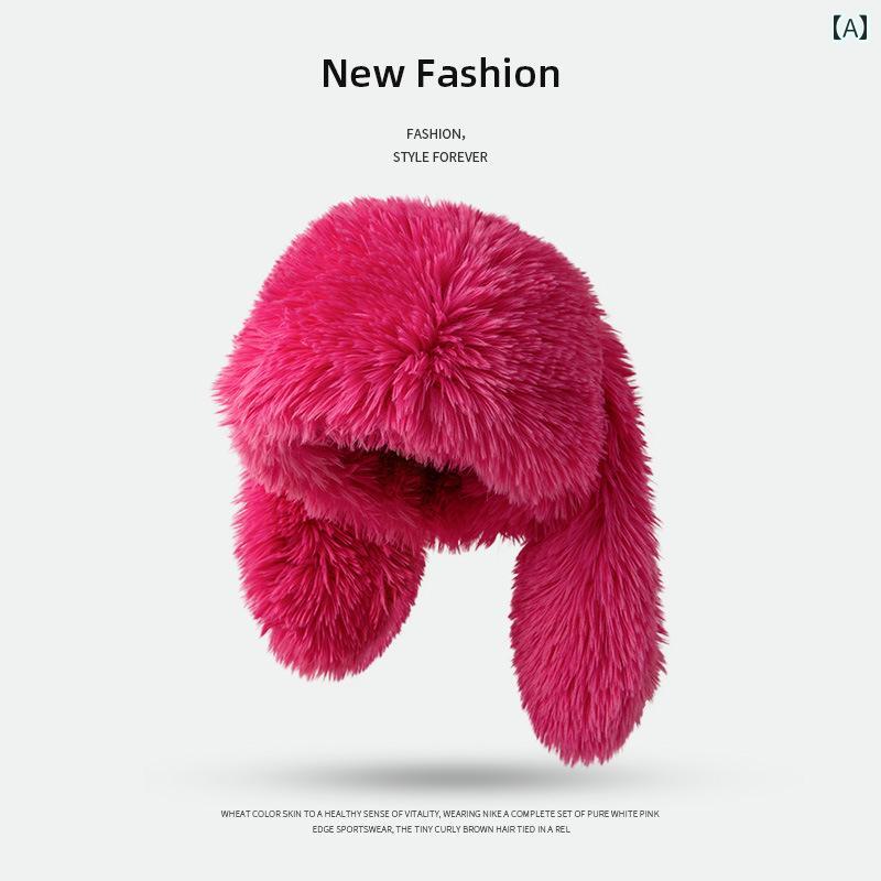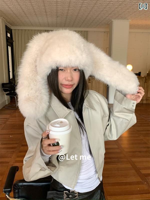 うさぎ耳 帽子 かわいい 韓国 かわいい ぬいぐるみの ウサギの 耳の 帽子 女性用 秋冬 厚手で 暖かい 保護 アウトドア 旅行 防風 雷 鋒