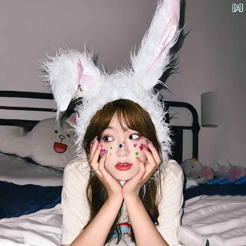 うさぎ耳 帽子 かわいい ネット かわいい ウサギの 長い 耳の 帽子 クリスマスの 頭飾り 女性 林小 寨 同じ 年の 写真 小道具