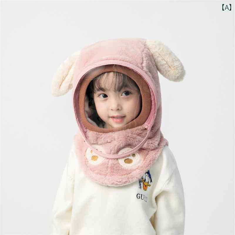 うさぎ耳 帽子 かわいい 子供用 帽子 冬用 ベビー 防風 暖かい サイクリング マスク 男の子と 女の子用の かわいい 耳 保護 フード。