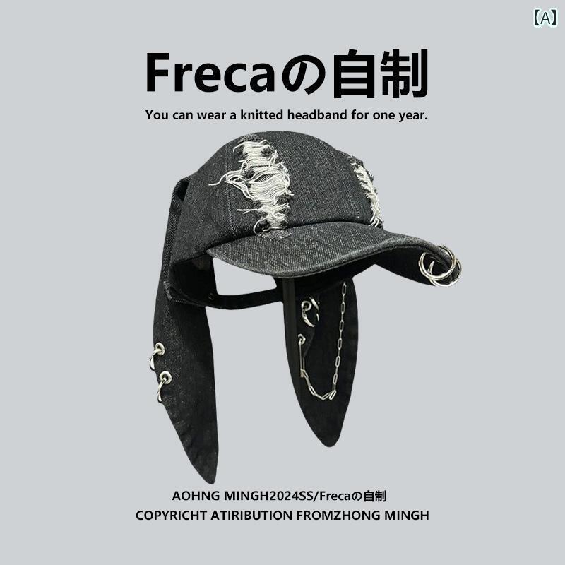 うさぎ耳 帽子 かわいい ダーク パンク バニー 耳 ひさし 帽子 デニム 穴 野球帽 女性な チェーン ヒップ ホップ 個性や び スタイル