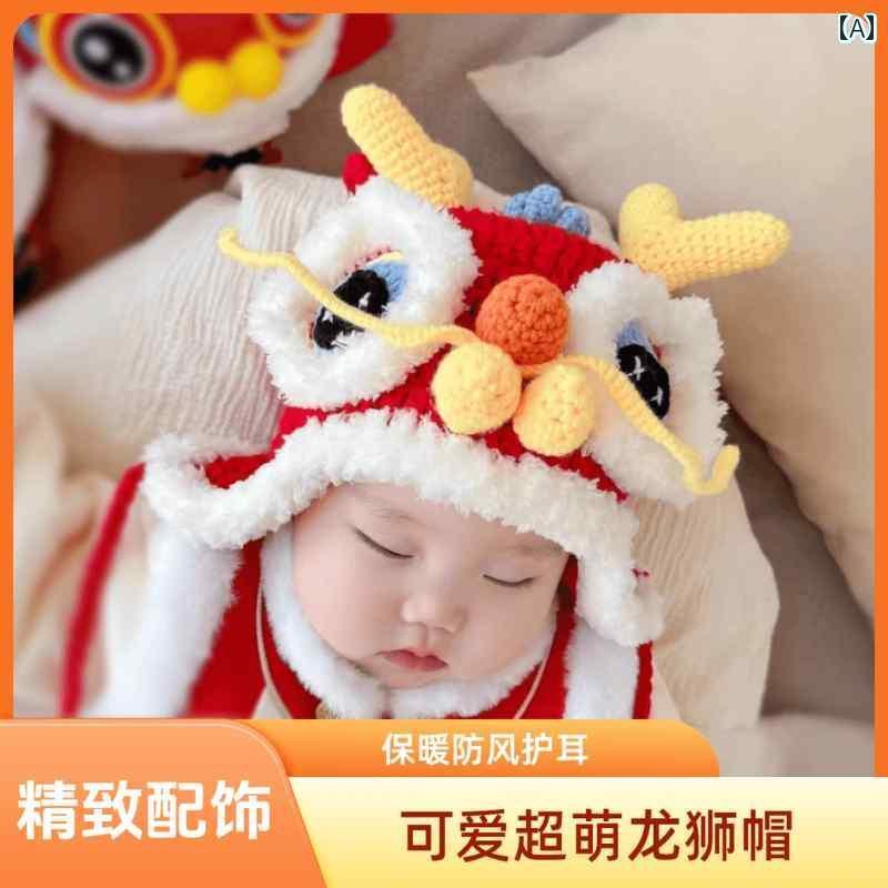 うさぎ耳 帽子 かわいい に 手編みの 赤ちゃんの ドラゴンと ライオンの 帽子 かわいいと かわいい 新生児 満月 生後 100日の ドラゴンの