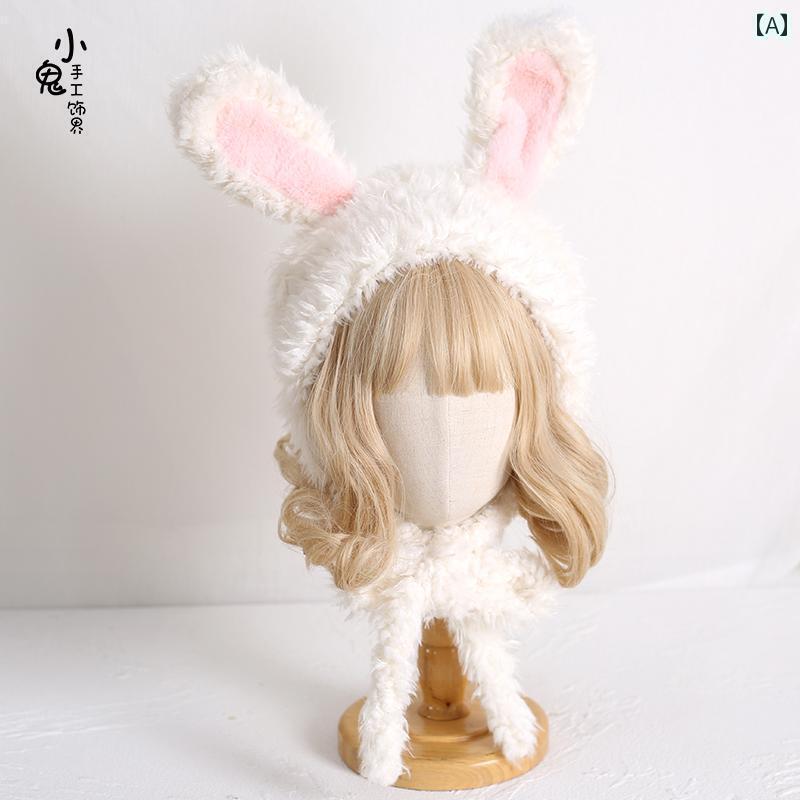 うさぎ耳 帽子 かわいい 甘くて かわいい ウサギの 耳の ぬいぐるみ 帽子 女性用 冬用 厚手 暖かい 防寒 ネット リティ 耳 保護 ヘッド バンド