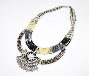【送料無料】ネックレス ※クランプペンダントファッションシルバーcc815 * collier multirangs perles et pendentif ethnique mode femme argent