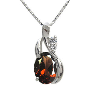 送料無料 一粒 ガーネット オーバル ネックレス シルバー