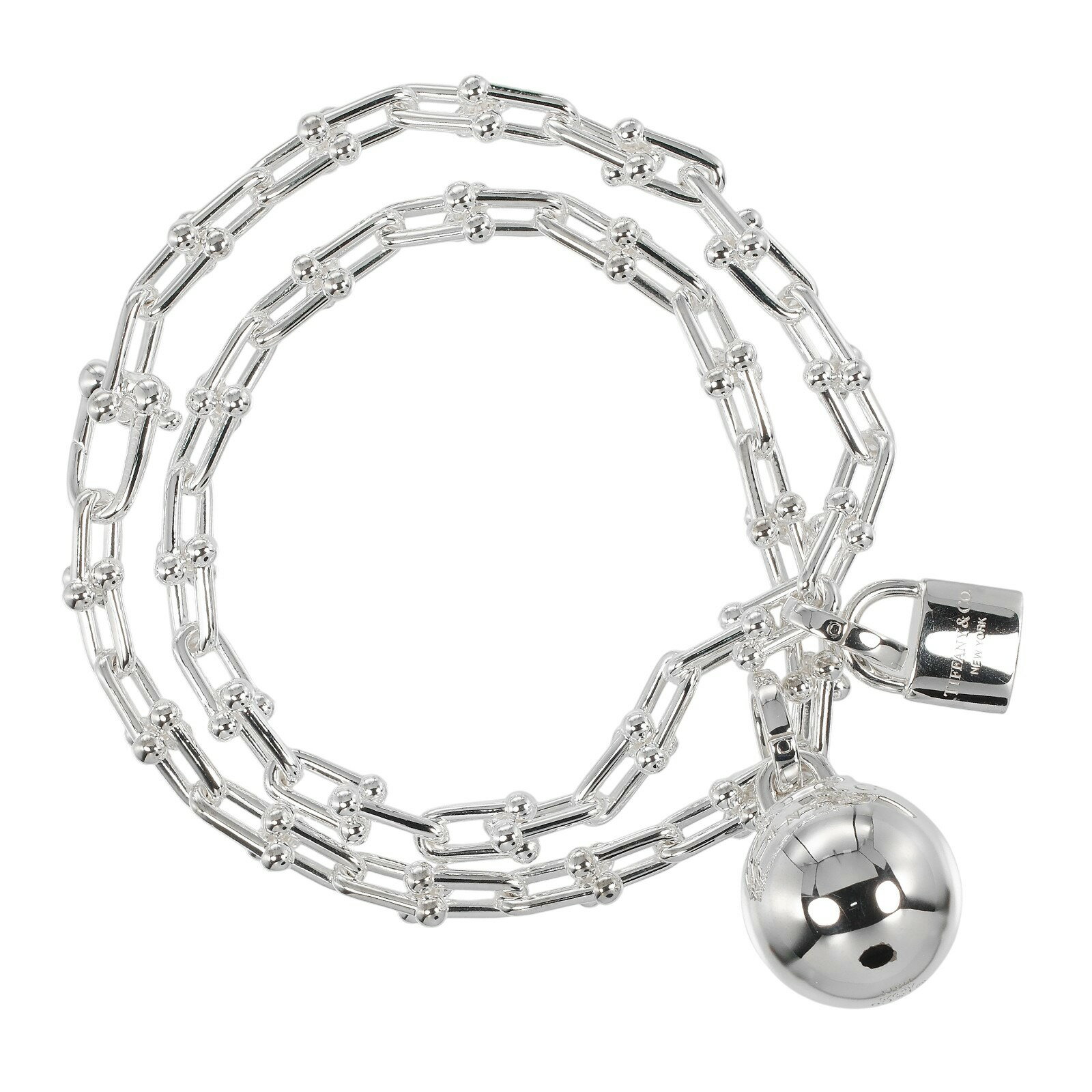 ピンディテールが光るレイヤード風チェーンブレスレット。