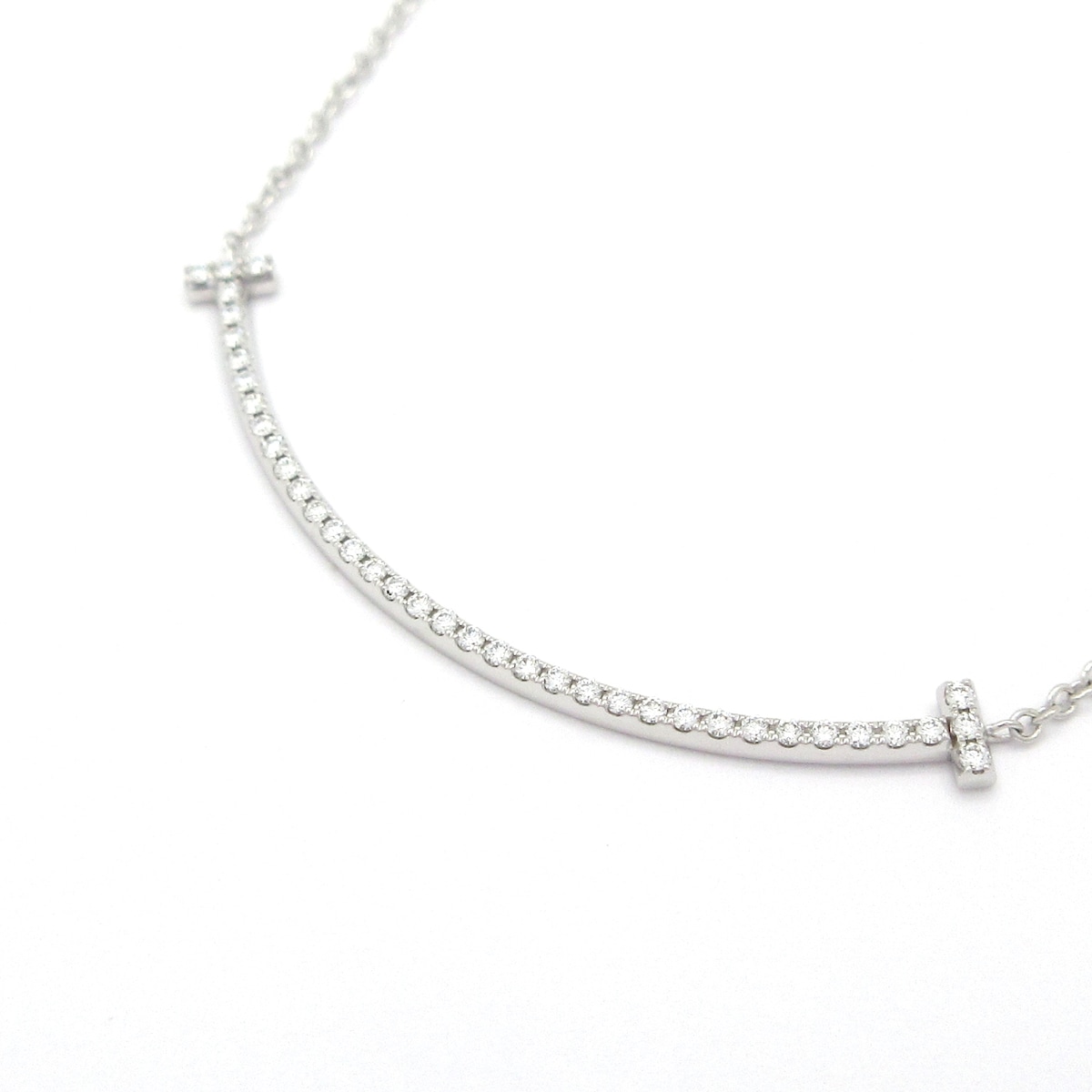【中古】TIFFANY&Co.(ティファニー) Tスマイルペンダント(スモール) ネックレス フルダイヤ K18WG×ダイヤモンド